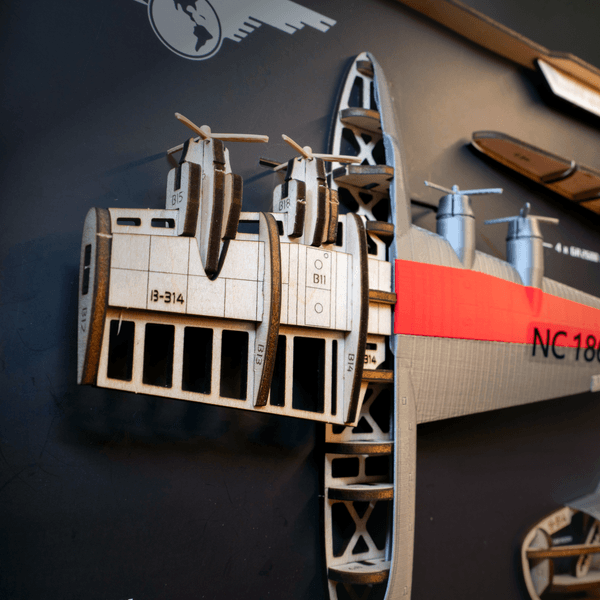 - Perspective effect: The combination of a wooden frame and a 3D-printed PLA shell presents a three-dimensional airplane body. Rather than simply restoring the outer appearance, this model reveals the internal structure, better reflecting the blueprint aesthetic.
