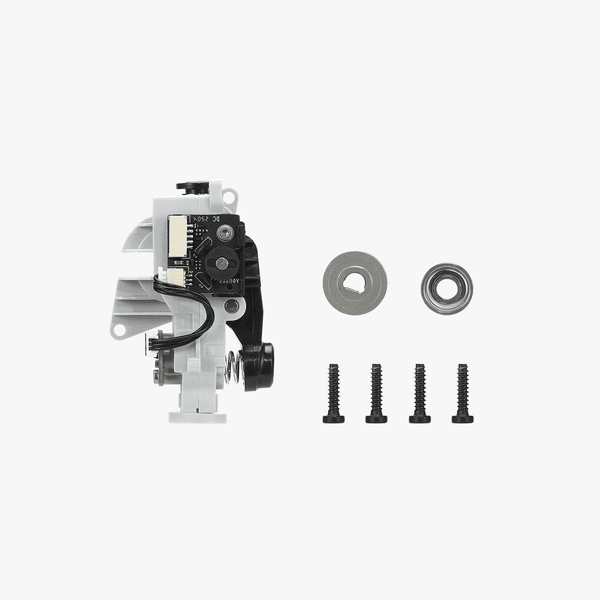 The AMS HT Feeder Unit includes a filament detection sensor and a filament odometry wheel. The Hall sensor detects whether the filament is inserted, while the odometry wheel calculates the feeding length.