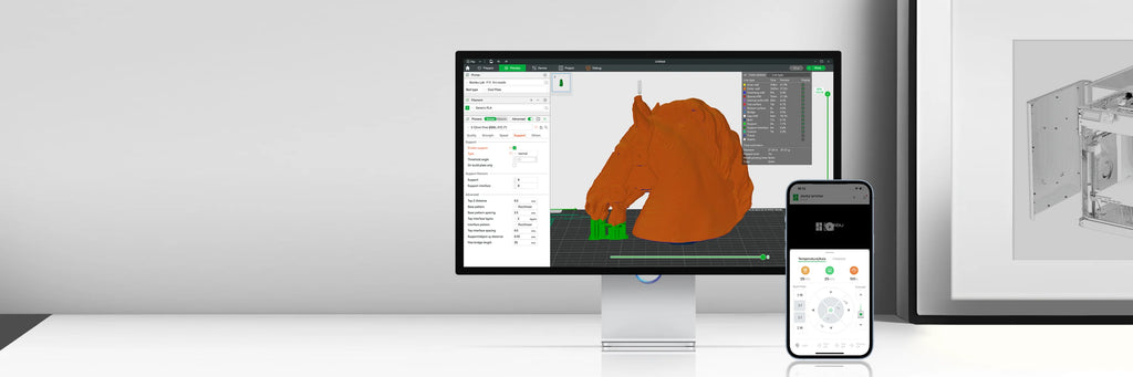 Sync with Bambu Studio and Bambu Handy for remote control, monitoring, and time-lapse recording via the built-in camera.