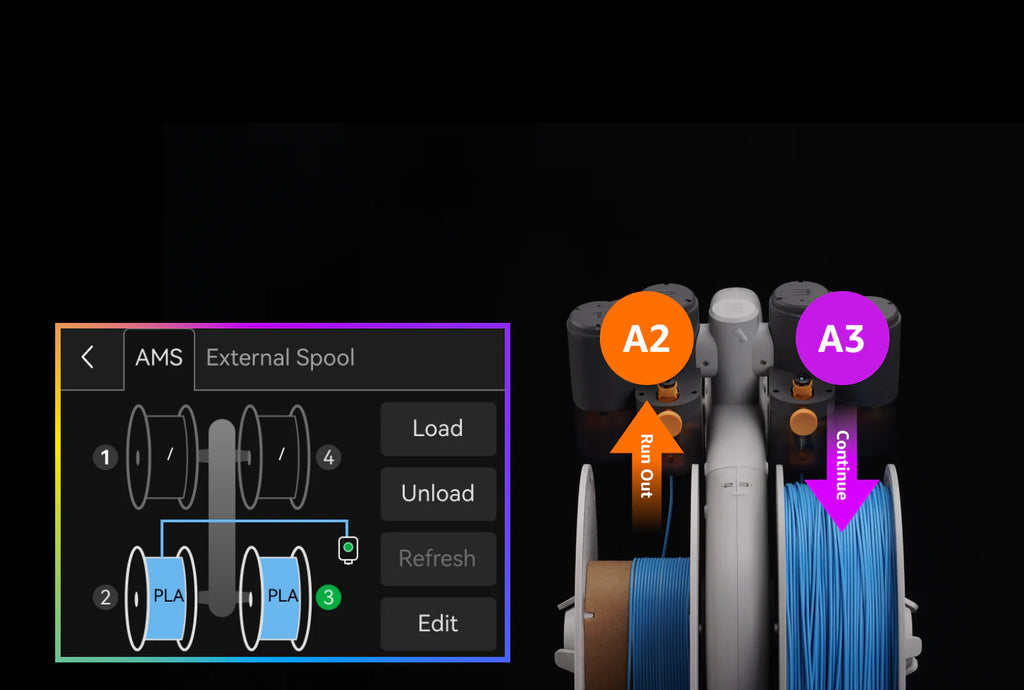 Multi-Color/Multi-Material CapabilityAutomatic Filament BackupImproved Spool CompatibilityEasy to MaintainRFID Filament Sync