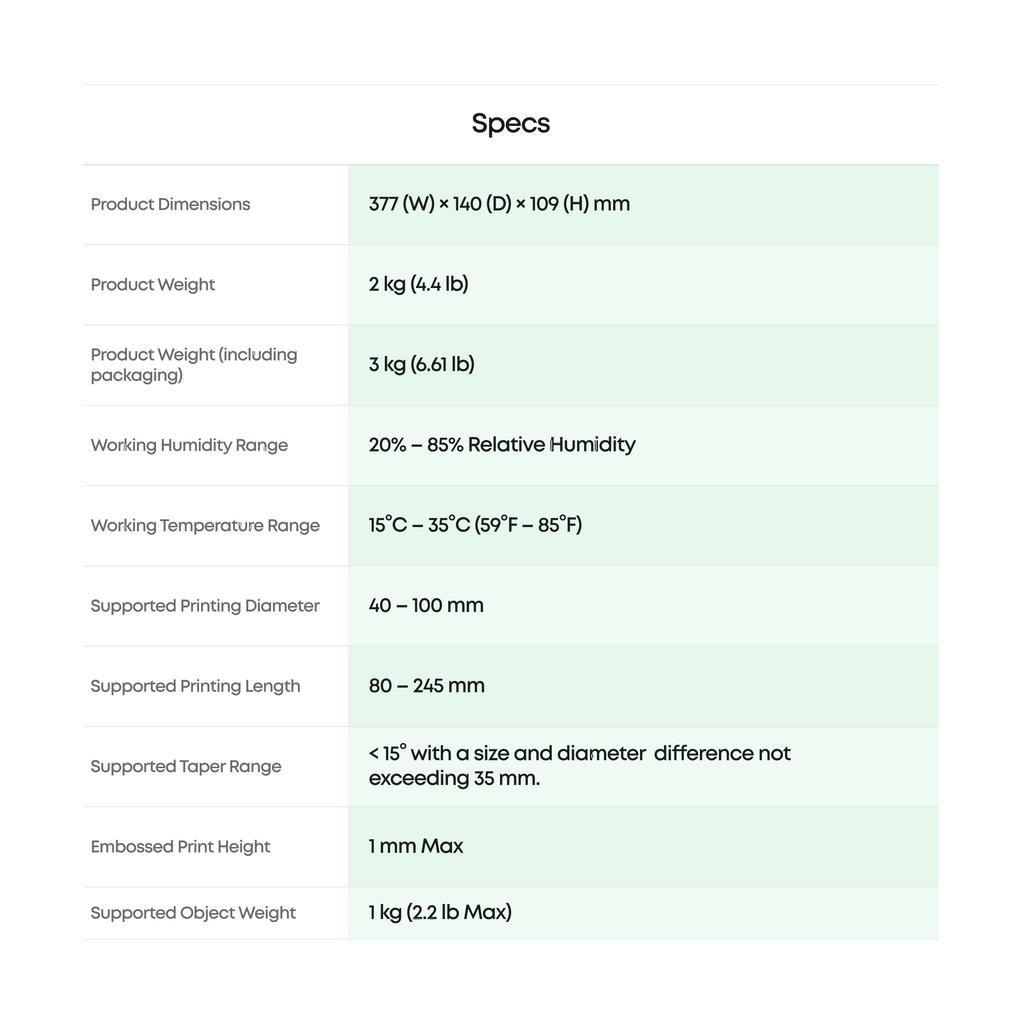 Perfect for custom merchandise, small business production, and creative makers, the rotary attachment allows you to print directly onto cylindrical or tapered objects without complicated setups.