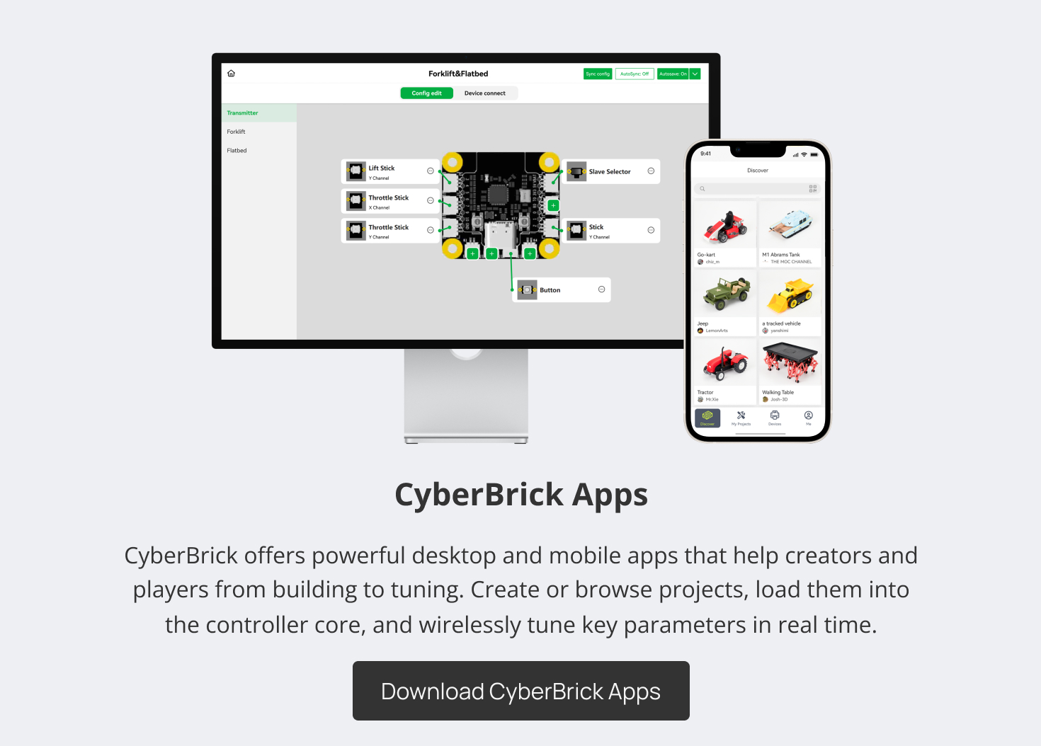 while the CyberBrick App allows full customization of controller functions to match your personal preferences.