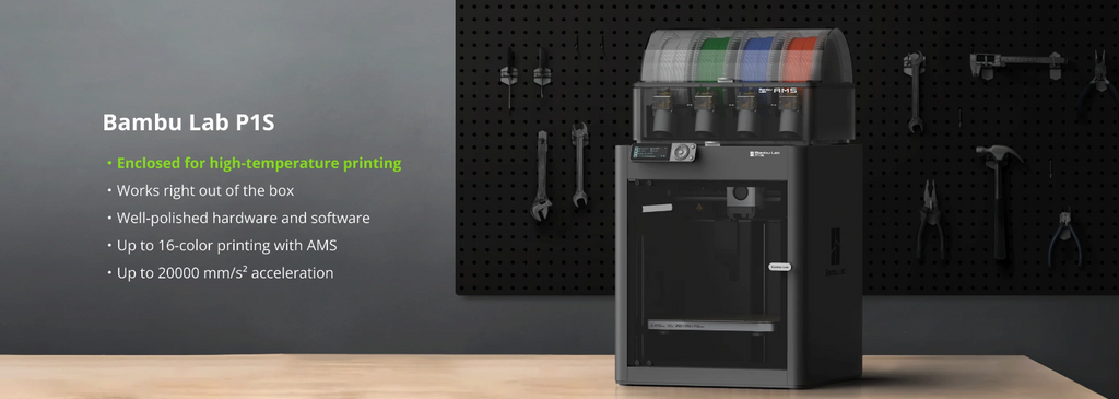 P1S features a fully enclosed chamber, enhanced cooling, and an activated carbon filter for improved safety when printing materials like ABS.