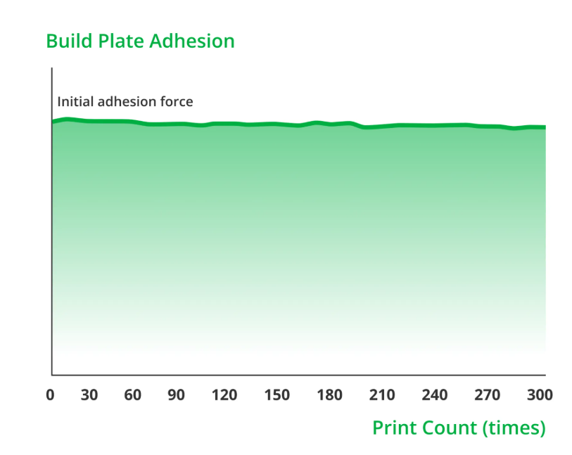 The SuperTack coating is durable, retaining its sticky properties even after extensive use. This results in a longer lifespan for the printing plate, reducing printing costs (less than 20% adhesion loss after 300 prints) and lowering carbon emissions.